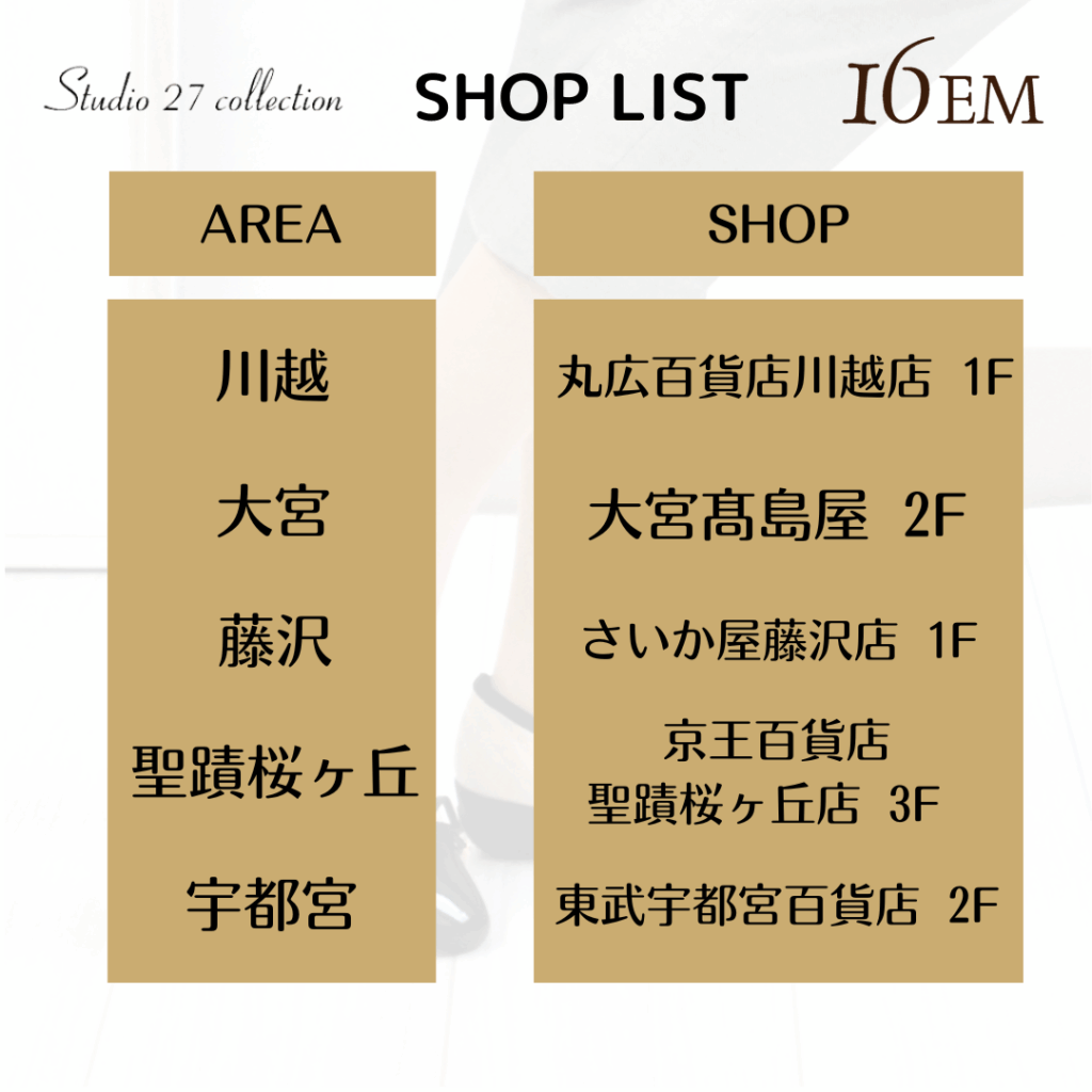 常設店舗・オンラインショップのご案内 2026-01-07 最終更新日時 : 2026-01-07 minakai-1953 常設店舗のご案内です。(2026年1月現在) オンラインショップは、BASEおよび楽天市場にて販売中です! 三中井オンラインショップ ーBASE ↓下記画像からアクセスできます↓ セイゼムショップ楽天市場 セイゼム以外にStudio27collectionも多数お取り扱いがございます。 ↓下記画像からアクセスできます↓